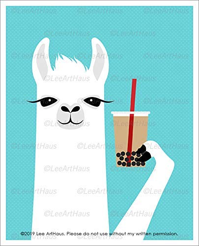 Amazon Com 93j White Llama Drinking Boba Bubble Tea Unframed Wall Art Print By Lee Arthaus Handmade Products